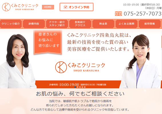 烏丸駅から徒歩5分とアクセスも良く、美容医療が初めての方でも無理なく通いやすい立地。若い世代はもちろん、30〜40代まで幅広い年齢層に支持されています。