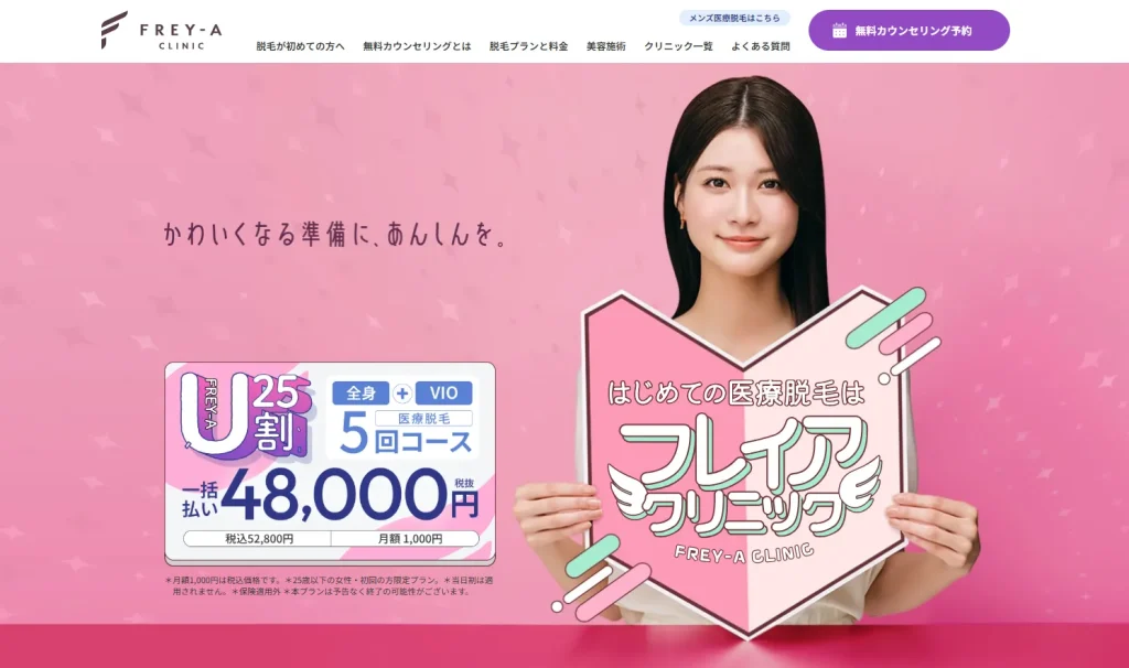 フレイアクリニックの全身脱毛料金