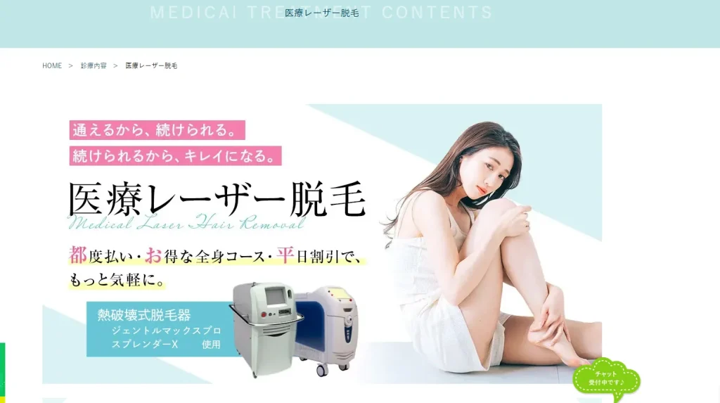 - 痛みを最小限に抑えた最新の医療脱毛機器