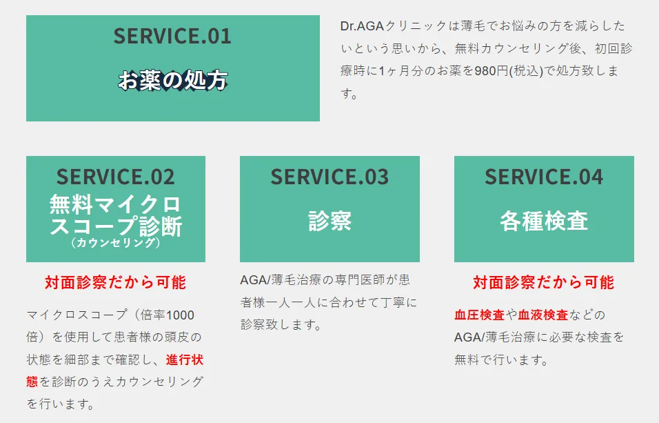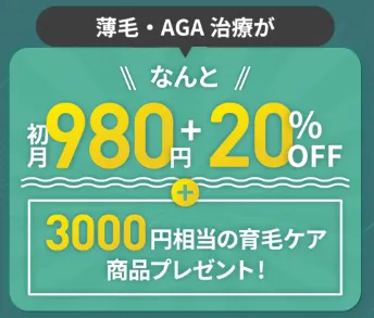 Dr.AGAクリニックは、「薄毛で悩む人を減らしたい」という考えのもと、初回1ヶ月分のAGA治療薬を980円(税込)で始められる点が大きな特徴です。