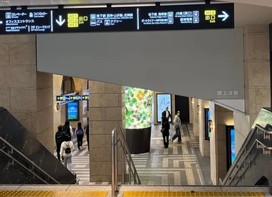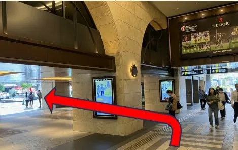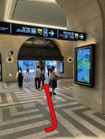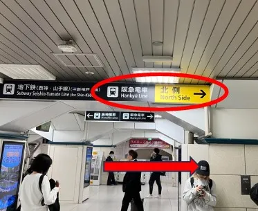 改札を出たら「阪急電車」の掲示板に従ってすぐに北側(右)に直進します。