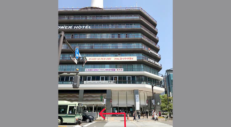 横断歩道を渡り、京都タワービルに沿って左手へ進む。