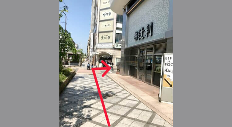 右手に西入口が見えるので、入ったら左手の階段から2階へ上がる。