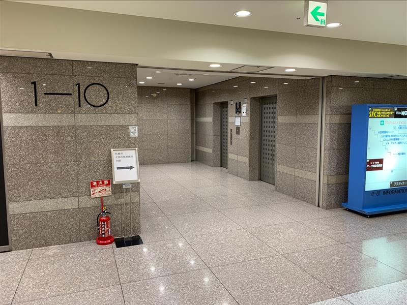 広場を抜け、「1-10」と書かれたエレベーターより6階へ。