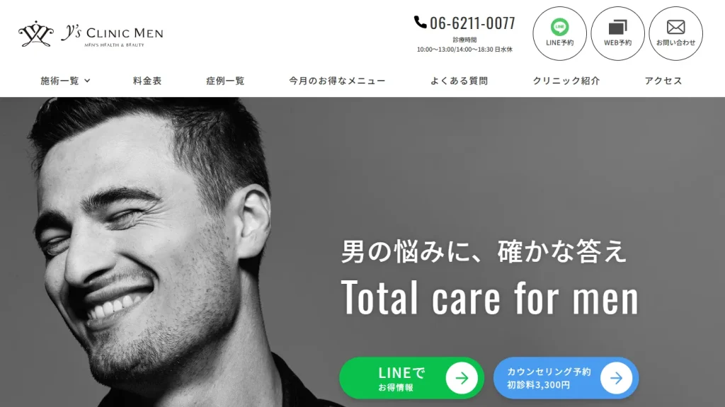 難波では、20代後半〜30代で治療を始める男性が最も多い傾向です。