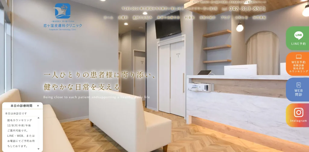 国立市はクリニックが多く、駅チカの便利な場所にあるクリニックを選べます。