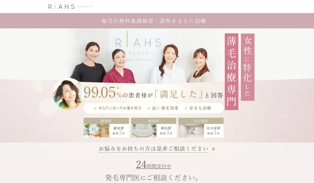 | 公式HP | https://riahsclinic.com/promo/af/ |