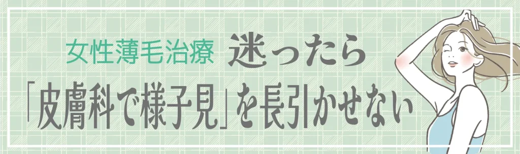 女性の薄毛治療は、年齢だけで「もう遅い」「まだ大丈夫」と判断する必要はありません。重要なのは年齢そのものではなく、今どの段階にあり、何を優先すべきかです。