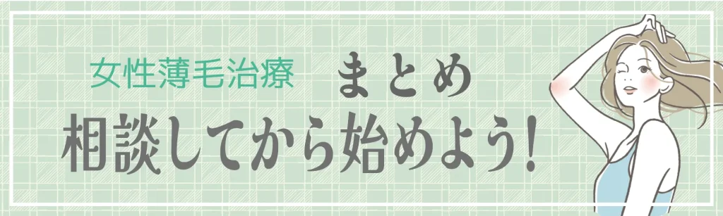 実際、女性の薄毛治療は人によって方法が異なり、体調や年齢、生活習慣の影響も受けやすいため、